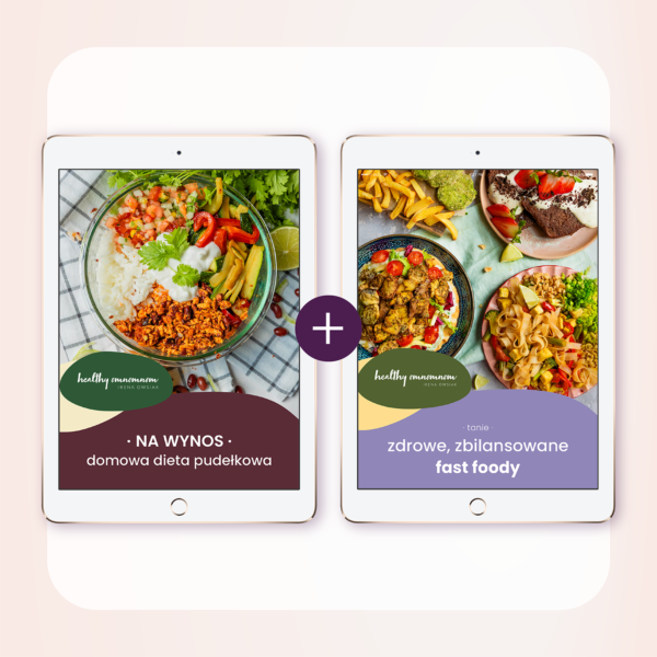 60 przepisów z e-booków: Na wynos. Domowa dieta pudełkowa i Zdrowe, zbilansowane fast foody zostało stworzonych specjalnie do tych e-booków, a ich premiery odbyły się w 2024 roku. Przepisów z e-booków nie znajdziesz nigdzie indziej – wszystkie zostały stworzone, zbilansowane i przetestowane przez dietetyczkę specjalnie do tych produktów.
